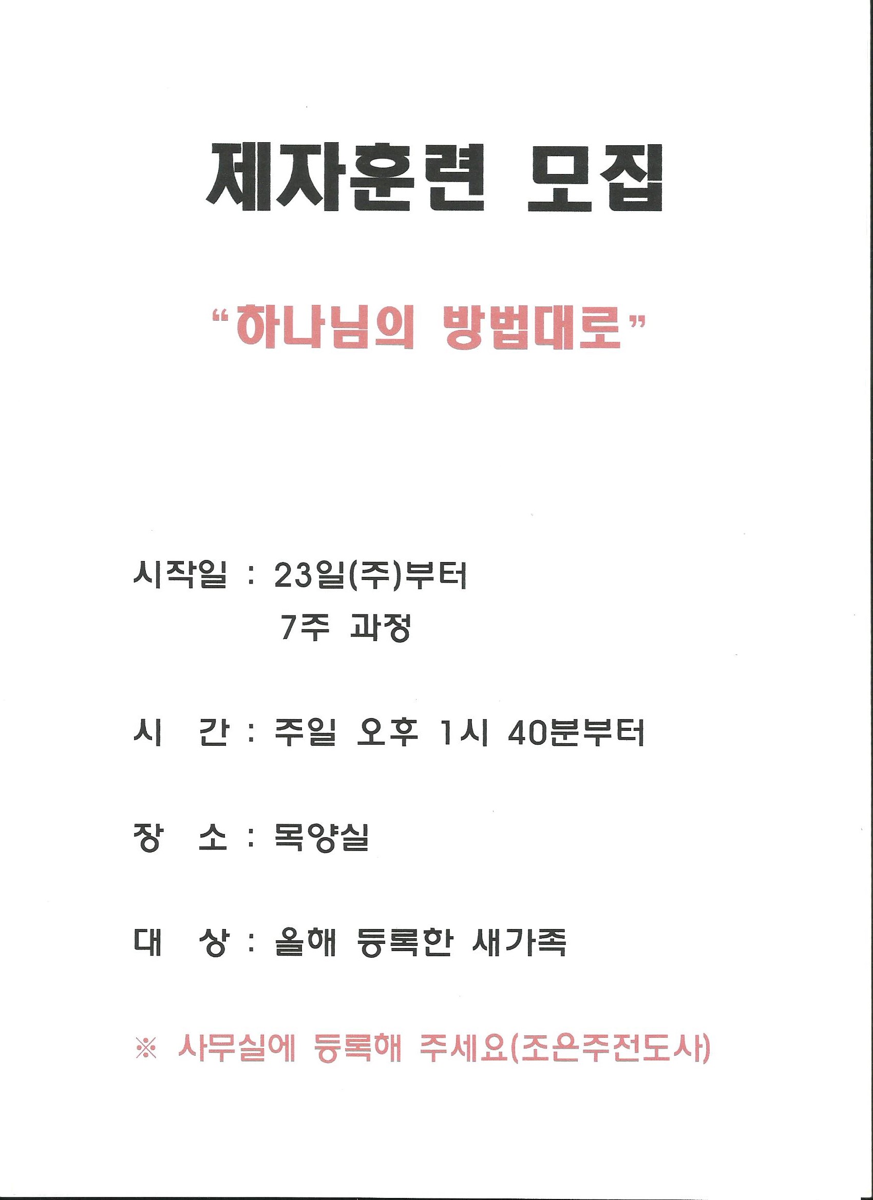제자훈련 모집(하나님의 방법대로)